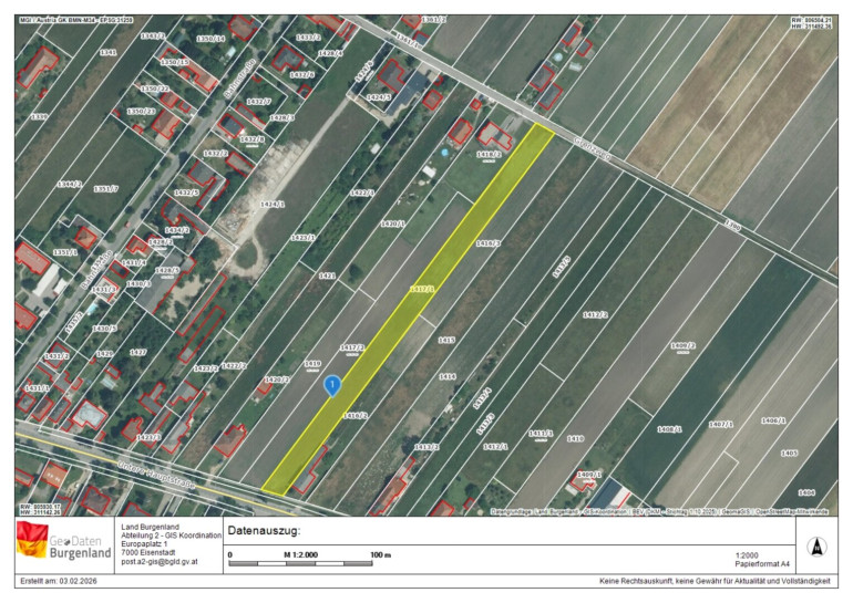 Die angegebene Grundstücksfläche basiert auf vorliegenden Unterlagen bzw. digitaler Vermessung. Die endgültigen Grenzen ergeben sich nach grundbücherlicher Durchführung und Vermessung.