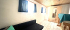 Geheizt wird mit Strom und zusätzlich steht ein zentraler Kamin im Wohnbereich.