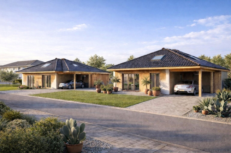 In Sensberg, einem ruhigen Ortsteil der Gemeinde Tarsdorf, entstehen zwei moderne Bungalows in energieeffizienter Holzbauweise.
