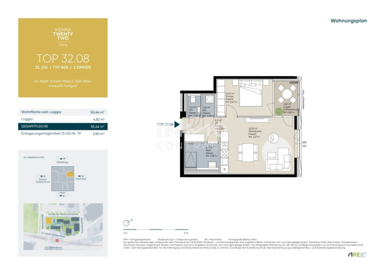 VIENNA TWENTYTWO Living ist ein modernes und zukunftsorientiertes Wohnprojekt im 22. Wiener Gemeindebezirk, Donaustadt, welches sich als Teil eines Hochhausensembles durch eine ausgezeichnete Lage, moderne Architektur und durchdachte Ausstattung auszeichnet. Die Wohnungen bieten den perfekten Rückzugsort für anspruchsvolle Bewohner, die sowohl die Nähe zur Stadt als auch Ruhe und Natur schätzen.Im Wohnturm befinden sich rund 300 Wohnungen in unterschiedlichen Größen, aufgeteilt in vier Ausstattungskategorien. Die wenigen noch verfügbaren Einheiten verfügen über 2-4 Zimmer und sind zwischen ca. 46 m² - ca. 215 m² groß. Sämtliche der verfügbaren Eigentumswohnungen befinden sich im 22. – 32. Stockwerk und überzeugen mit der hochwertigen Ausstattungslinie „Sky Living“ (22. - 30. OG), wobei sich die Penthouse-Etagen (31. - 32. OG) nochmals in Ihrer Beschaffenheit abheben.