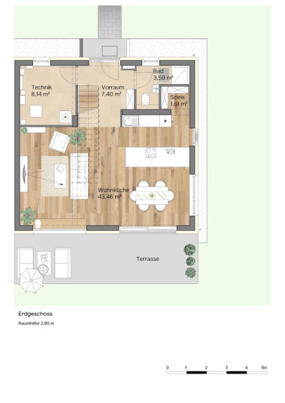 Die dargestellten Schaubilder wurden teilweise digital bearbeitet bzw. mithilfe künstlicher Intelligenz visualisiert. Sie dienen ausschließlich der beispielhaften Darstellung von Einrichtungs- und Gestaltungsmöglichkeiten und stellen keinen verbindlichen Ausführungs- oder Lieferumfang dar. Maßgeblich für die tatsächliche Ausführung sind ausschließlich die vertraglichen Vereinbarungen, Bau- und Ausstattungsbeschreibungen sowie die genehmigten Pläne. Abweichungen in Ausstattung, Materialien, Farben, Möblierung oder Bepflanzung sind möglich.