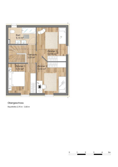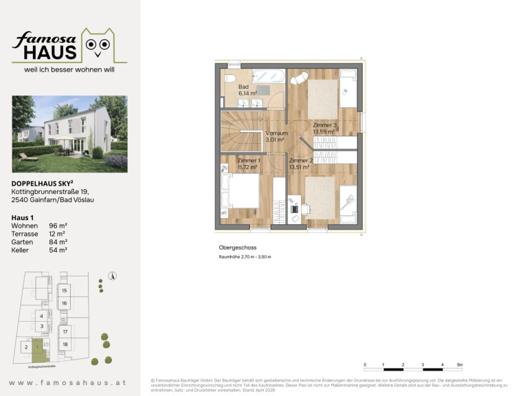 Die Vollunterkellerung schafft wertvollen Raum für alles, was im Familienalltag Platz braucht: Stauraum, Vorräte, Hobby oder Fitness. Drei Schlafzimmer bieten Rückzugsmöglichkeiten für jedes Familienmitglied. Im Obergeschoss sorgt eine Raumhöhe von bis zu 3,50 m für spürbare Weite und ein besonders luftiges Wohngefühl. Massiv in Ziegelbauweise errichtet und ausgestattet mit Luftwärmepumpe, Fußbodenheizung und PV-Anlage, verbindet „Sky²“ nachhaltigen Komfort mit niedrigeren Energiekosten. Zwei Parkplätze sind inklusive – weil ich besser wohnen will.