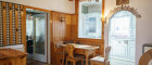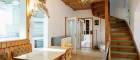 Auf der unteren Wohnebene gelangt man über einen Windfang in den Dielenbereich, welcher einen einladenden Empfangsraum eröffnet, hier ist ein Essbereich neben der Küche untergebracht und alle weiteren Räume erreichbar. Auf der Südostseite des Gebäudes sind Speisezimmer und Schlafzimmer situiert, gefolgt von der großen überdachten Terrasse/Veranda. Im Nordwestflügel des Hauses befinden sich Abstellraum, Badezimmer und ein wunderschönes Erkerzimmer, welches als Wohnzimmer verwendet wurde.