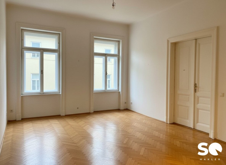Die Wohnung befindet sich im 1. Obergeschoß in einem schönen Gründerzeithaus mit gegliederter Fassade.