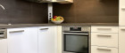 eine getrennte Küche, möbliert mit einer Einbauküche und allen Geräten,