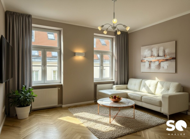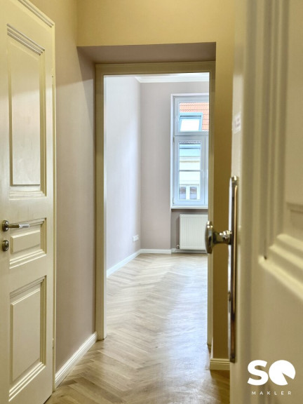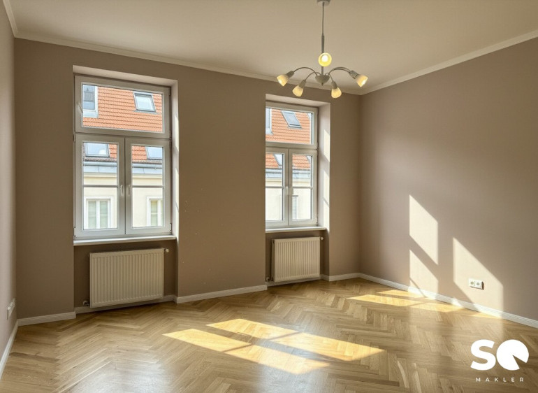 Eine seltene Gelegenheit! In dieser gefragten und zugleich trendigen Wohnlage des 6. Bezirks befindet sich diese außergewöhnlich gut geschnittene Altbauwohnung mit ca. 54 m² Wohnfläche. Sie liegt im dritten Liftstock eines 2011 generalsanierten und bis heute sehr gepflegten Hauses aus der Jahrhundertwende. Hier überzeugt die seltene Kombination aus Altbauflair, modernem Wohnkomfort und durchdachter Raumplanung.