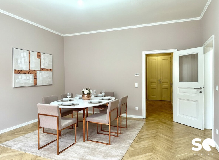 Die Wohnung wurde 2011 generalsaniert und soeben saniert, sodass alles im neuwertigen Glanz erstrahlt. Historische Elemente wie Stuckatur treffen hier auf ein modernes Beleuchtungskonzept mit stilvollen Wandleuchten, edle Materialien und zeitloses Design.