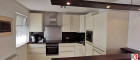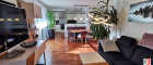 Das helle Wohnzimmer mit Essbereich und integrierter Küche bildet den zentralen Mittelpunkt der Wohnung und bietet direkten Zugang zu einem Balkon, der zum Entspannen im Freien einlädt.