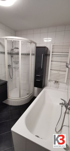 Ergänzt wird das Raumangebot durch ein Badezimmer mit Badewanne, Dusche und Waschmaschinenanschluss, einen praktischen Abstellraum innerhalb der Wohnung sowie ein separates WC.