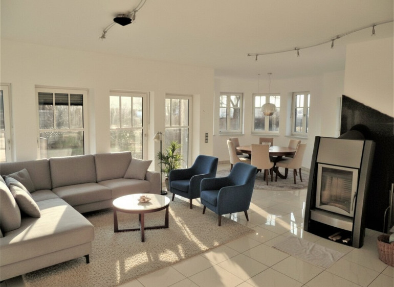 Das Haus besticht durch seine hochwertige Ausstattung: edle Fliesen, Parkett- und Steinböden sorgen für ein stilvolles Wohngefühl. Die Fußbodenheizung und der Schwedenofen garantieren angenehme Wärme an kalten Tagen. Drei moderne Bäder die teilweise mit Fenster ausgestattet sind und drei WCs bieten höchsten Komfort für Sie und Ihre Familie. Die Einbauküche ist funktional und modern gestaltet – hier macht Kochen richtig Freude.