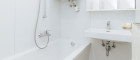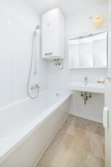 Das Badezimmer ist funktional gestaltet und bietet genügend Platz für Ihre tägliche Routine. Zusammen mit dem separaten WC und dem Abstellraum zeigt sich hier, wie durchdacht die gesamte Wohnung geplant ist.