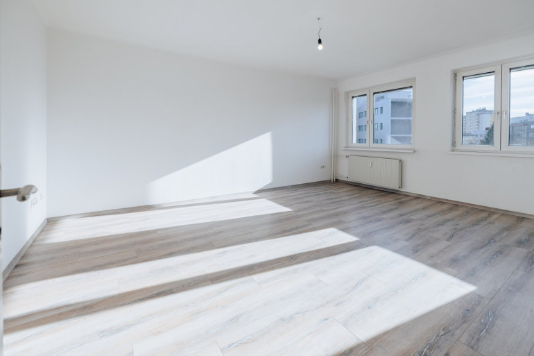 Der Wohn- und Schlafbereich bildet das Herzstück der Wohnung. Die großzügigen Fensterflächen lassen viel Tageslicht herein und schaffen eine helle, freundliche Atmosphäre. Ob gemütliche Leseecke, ein Arbeitsplatz im Homeoffice oder ein harmonisch eingerichteter Schlafbereich – hier haben Sie die Möglichkeit, Ihre persönlichen Wohnideen frei umzusetzen.