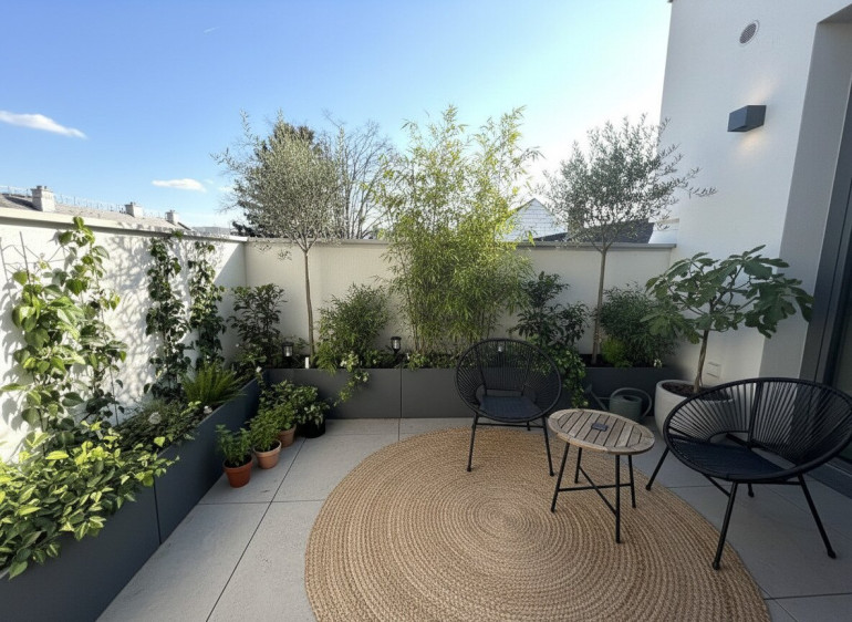 Die Terrasse erweitert den Wohnraum nach außen und bietet Platz für entspannte Stunden im Freien.