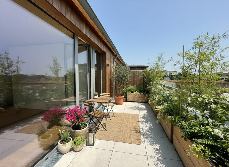 Die Terrasse erweitert den Wohnraum nach außen und bietet eine Fläche für Erholung und Freizeitgestaltung.