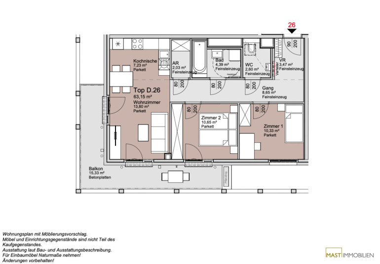 Details Wohnung Bauteil D Top 26: