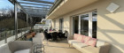 - überdachte Terrasse mit Sonnenschutz und hochwertigen Steinfliesen