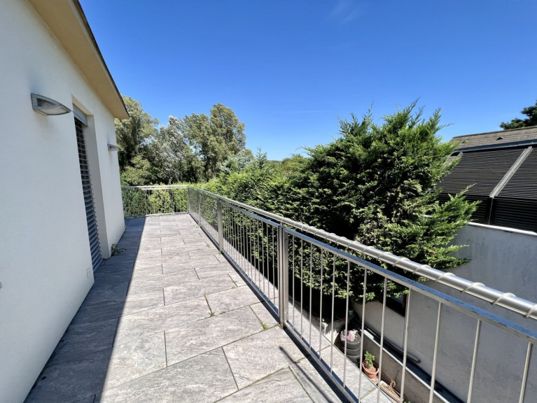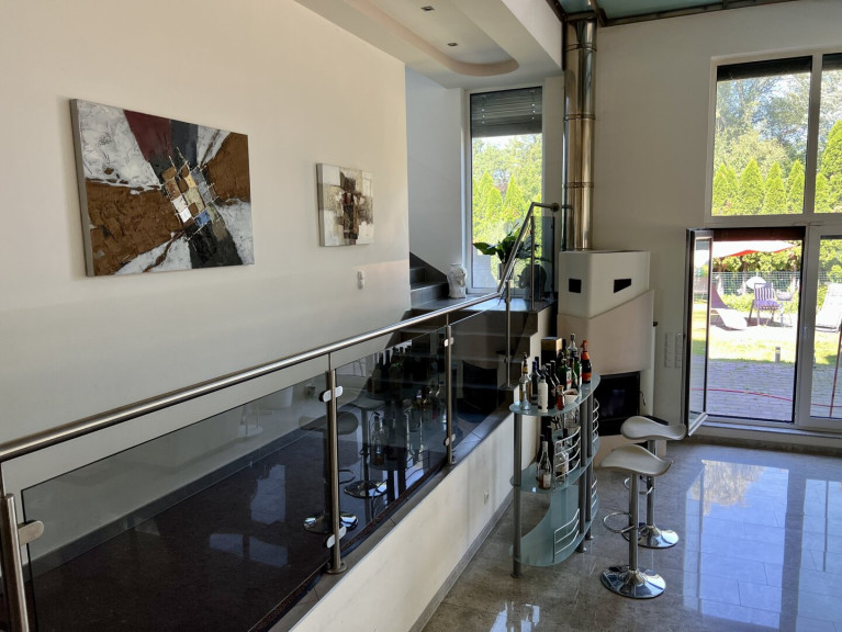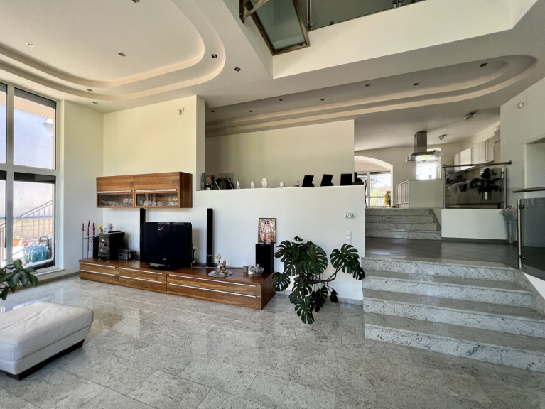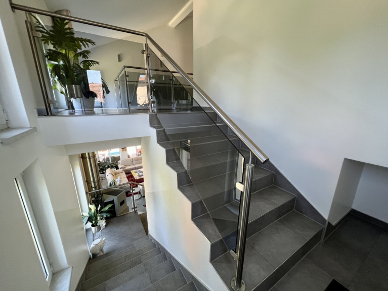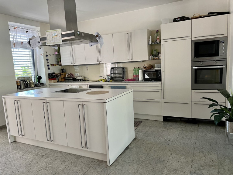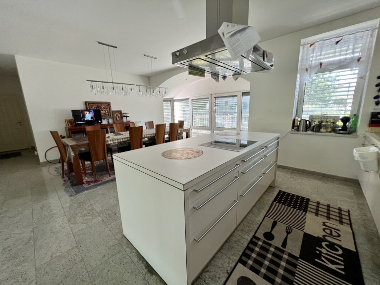Die luxuriös ausgestattete Villa erstreckt sich über zwei Etagen und bietet reichlich Platz für Ihre Familie. Auf einem Grundstück von 748 m² und einer Wohnfläche von ca. 344 m² und einer Gesamtwohnnutzfläche von 448 m² bietet diese hochwertige Liegenschaft einen großen Wohnsalon mit Kaminofen sowie eine offene, moderne Küche mit einem großzügigen Essbereich des Weiteren 6 geräumige Schlafzimmer jene im Obergeschoss jeweils mit Balkonen, 3 Badezimmer mit Dusche, Whirlpool und WC sowie 2 separate Toiletten. Der offene Wohnbereich mit großen Fensterelementen lässt viel Tageslicht herein und schafft eine einladende Wohnatmosphäre. In einem der Schlafzimmer im Erdgeschoss befindet sich zusätzlich ein geräumiger Schrankraum. Ein großes Arbeitszimmer, welches zusätzlich von der Gartenseite aus separat begehbar ist, bietet sich auch an dieses als Büro oder Praxis mit Kundenverkehr zu nutzen. Die moderne Küche ist mit hochwertigen Geräten ausgestattet und bietet viel Platz für kulinarische Kreationen. Ein großer Garten mit Grillplatz und überdachter Westterrasse lädt zu entspannten Nachmittagen und geselligen Grillabenden ein. Der Garten bietet ebenso ausreichend Platz sich ein Swimmingpool nach eigenem Wunsch zu errichten um sich an heißen Sommertagen erfrischen zu können.
