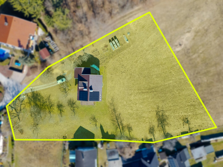 Auf dem Grundstück befindet sich bereits ein sehr gepflegtes Bestandsgebäude in Massivbauweise aus den 1980er-Jahren. Das Haus verfügt über ca. 157 m² Wohnfläche sowie zusätzlich über ca. 61 m² Kellergeschoss. Die Raumaufteilung mit insgesamt vier Zimmern bietet eine solide Grundlage für unterschiedliche Nutzungsmöglichkeiten. Zwei Balkone, eine Garage sowie der vorhandene Keller erweitern das Raumangebot um praktische und komfortable Zusatzflächen. Besonders hervorzuheben ist zudem die bereits vorhandene Photovoltaikanlage samt Speicher, die im Hinblick auf Energieeffizienz und nachhaltige Nutzung einen zusätzlichen Mehrwert bietet. Die Beheizung erfolgt mittels einer Zentralheizung mit Festbrennstoffen. Für Anleger ergibt sich daraus eine besonders interessante Ausgangslage: Einerseits ist bereits ein nutzbarer Bestand vorhanden, andererseits eröffnet die großzügige Grundstücksfläche attraktiven Entwicklungsspielraum für zukünftige Konzepte – selbstverständlich vorbehaltlich einer individuellen baurechtlichen und behördlichen Prüfungen.