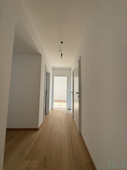 Erdgeschoss der Wohnung – 1. Obergeschoss: Die untere Ebene ist ganz dem privaten Rückzug gewidmet. Drei separate Schlafzimmer (11,92 m² / 10,48 m² / 10,03 m²) bieten Platz für die ganze Familie oder ein flexibles Home-Office-Konzept. Ein großzügiger Vorraum (7,98 m²) mit angeschlossenem Flur (5,85 m²) sorgt für eine klare, durchdachte Erschließung. Komplettiert wird diese Ebene durch ein modernes Badezimmer mit Badewanne sowie ein separates WC.