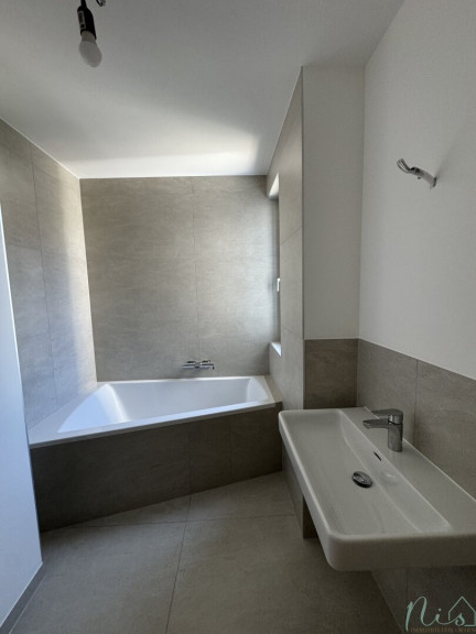 Fliesen, Parkett, Solarenergie, Fußbodenheizung, Bad mit Fenster, Badewanne, Dusche