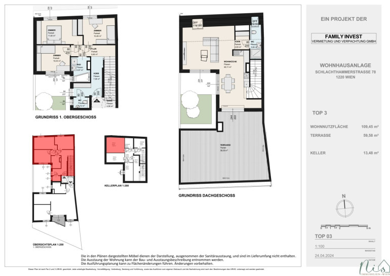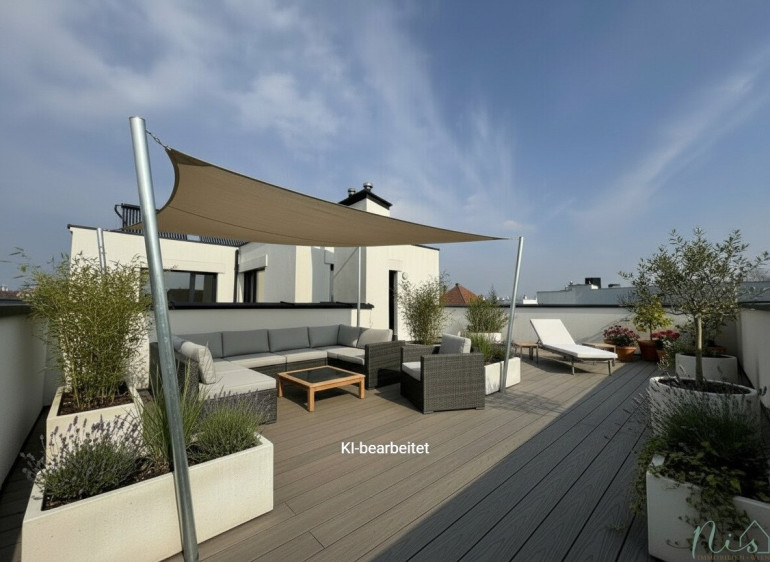 Die Krönung: Ihre 59 m² Dachterrasse Treten Sie hinaus und die Stadt gehört Ihnen. Die riesige Dachterrasse mit 59,58 m² bietet Raum für Outdoor-Dining, einen Loungebereich, Pflanzen, Sonnenliegen – oder einfach Stille über dem Alltag. Ein Außenbereich in dieser Dimension ist in Wien eine echte Rarität und macht Top 3 zu einem absoluten Unikat.