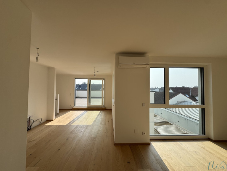 Über den Dächern von Donaustadt erwartet Sie ein Wohnerlebnis der besonderen Klasse. Dieses außergewöhnliche Dachgeschoss-Duplex mit 109,45 m² Wohnnutzfläche vereint großzügiges Wohnen auf zwei Ebenen mit einem der seltensten Güter im urbanen Raum: 59,58 m² private Dachterrasse – Ihr persönliches Freiluft-Wohnzimmer über der Stadt.