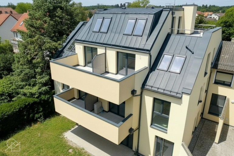 Moderne Architektur mit offenen Balkonen und Terrassen verleihen dem Wohngebäude einen zeitgemäßen ästhetischen Charakter.