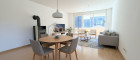 Das Herzstück der Wohnung ist der offene Wohn- und Essbereich. Hier sorgt der stilvolle Holzofen an kalten Wintertagen für wohlige Wärme, während die integrierte Küche mit hochwertigen Siemens-Geräten und einem neuen Kühlschrank bestens ausgestattet ist. Die angrenzende, beeindruckende 20,5 m² große Terrasse fängt dank ihrer idealen Südwest-Ausrichtung die Sonne bis in die späten Abendstunden ein und bietet einen unverbaubaren Logenplatz mit Blick auf die Gipfel der Silvretta und des Rätikon.