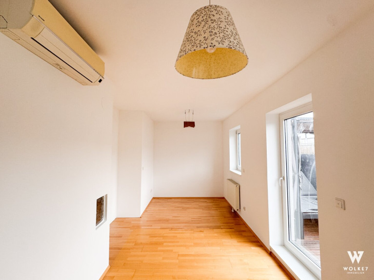Der helle Wohnbereich mit moderner DAN-Einbauküche und direktem Zugang zur Terrasse bildet das Herzstück der Wohnung. Durch die großzügige Raumgestaltung lässt sich hier bei Bedarf ein drittes Zimmer unkompliziert durch eine Rigipswand schaffen – perfekt, wenn zusätzlicher Raum für Arbeiten, Gäste oder Kinder gewünscht ist.