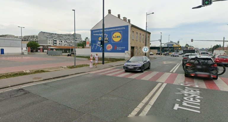 Das Objekt befindet sich am Verkehrsknotenpunkt Altmannsdorfer Straße/ Triester Straße in absoluter Frequenzlage mitten im Shoppingumfeld und ganz nahe an Wohngebieten von der großen Wohnhausanlage bis zur kleinteiligen Einfamilienhaussiedlung.