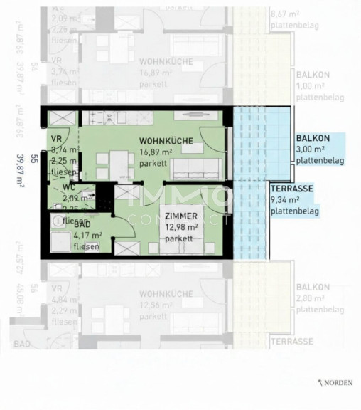 - Jede Wohnung mit privater Freifläche (Loggia, Balkon, Terrasse, Eigengarten)