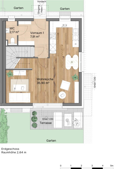 - Eigengarten, Terrasse & Dachterrasse, inkl. Parkplatz & Vorbereitung Stromanschluss
