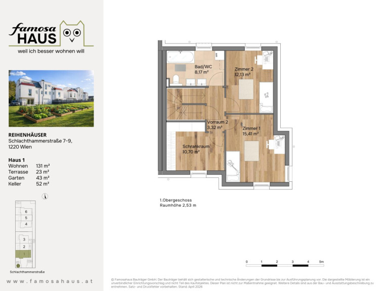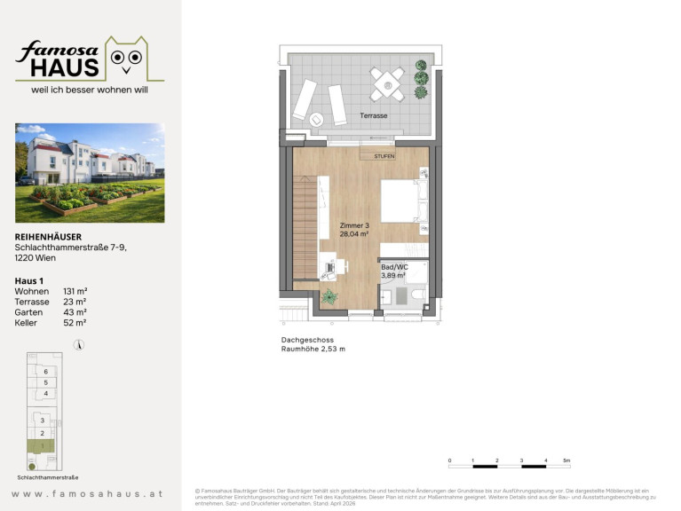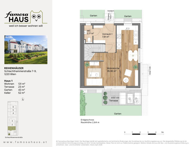 Hier bieten 6 schlüsselfertige Reihenhäuser viel Licht, klare Grundrissgestaltung und Freiflächen mit Mehrwert: Garten, Terrasse und Dachterrasse schaffen Platz für Familienzeit und Erholung. Massiv aus Ziegel gebaut, energieeffizient ausgestattet und auf vier Ebenen gedacht – ein Zuhause, das heute begeistert und dauerhart Wert behält.