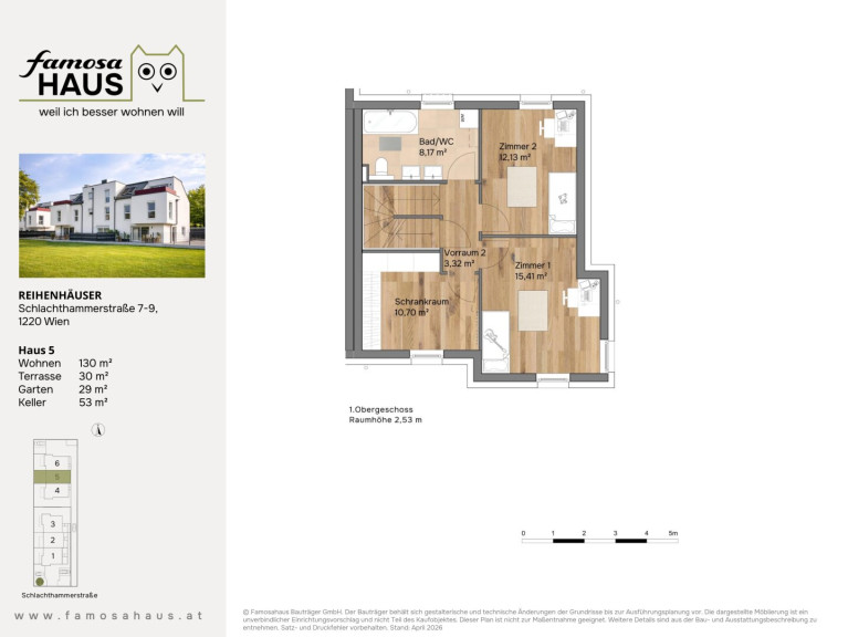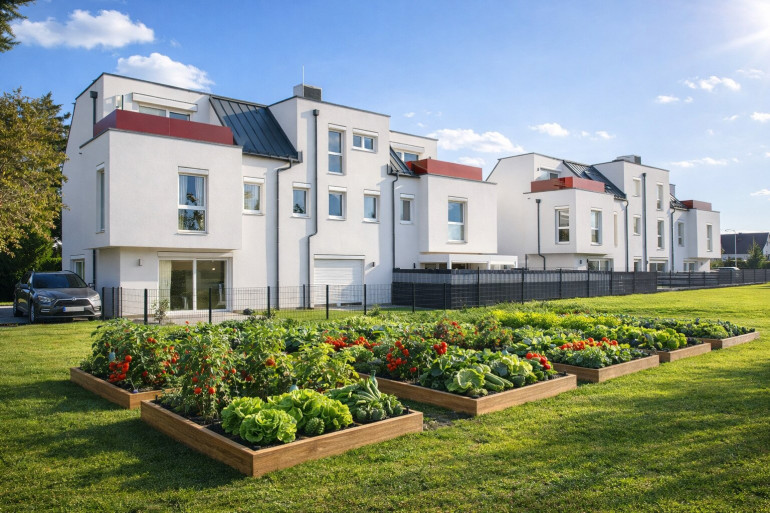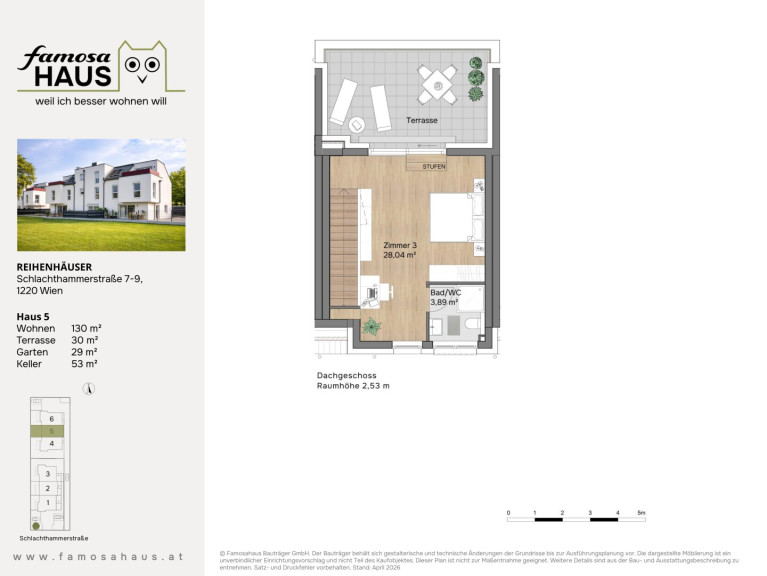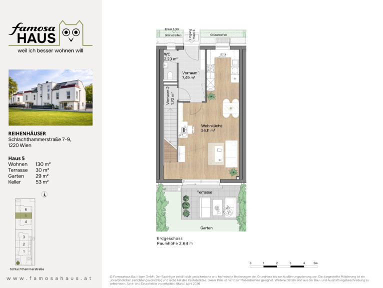 Hier bieten 6 schlüsselfertige Reihenhäuser viel Licht, klare Grundrissgestaltung und Freiflächen mit Mehrwert: Garten, Terrasse und Dachterrasse schaffen Platz für Familienzeit und Erholung. Massiv aus Ziegel gebaut, energieeffizient ausgestattet und auf vier Ebenen gedacht – ein Zuhause, das heute begeistert und dauerhart Wert behält.