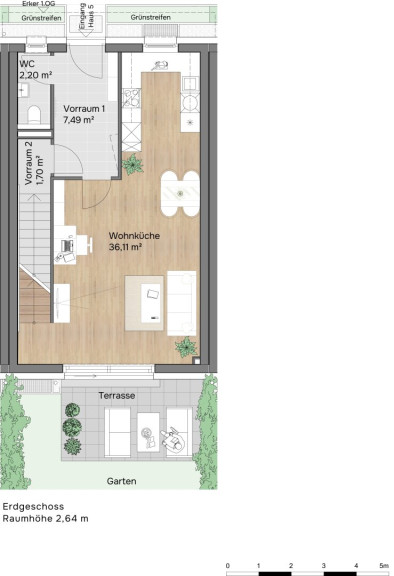 - Eigengarten, Terrasse & Dachterrasse, inkl. Parkplatz & Vorbereitung Stromanschluss