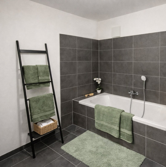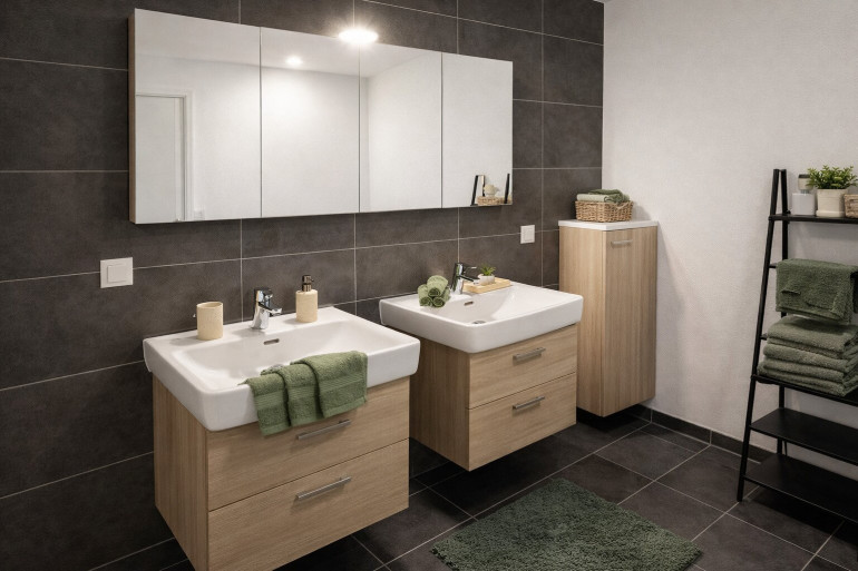Je nach Objekt werden Kaufpreise mit und ohne Oberflächenpaket angeboten. Das Oberflächenpaket beinhaltet Malerarbeiten, Fliesen-/Plattenarbeiten (z. B. Feinsteinzeug 60 × 60 cm „Ares Warm Beige“) und Bautischlerarbeiten (z. B. Fertigparkett Eiche Landhausdiele), hochwertige Sanitärausstattung z.B. mit Villeroy und Boch. Für weitere Informationen zur Bau- und Ausstattung kontaktieren Sie uns gerne.