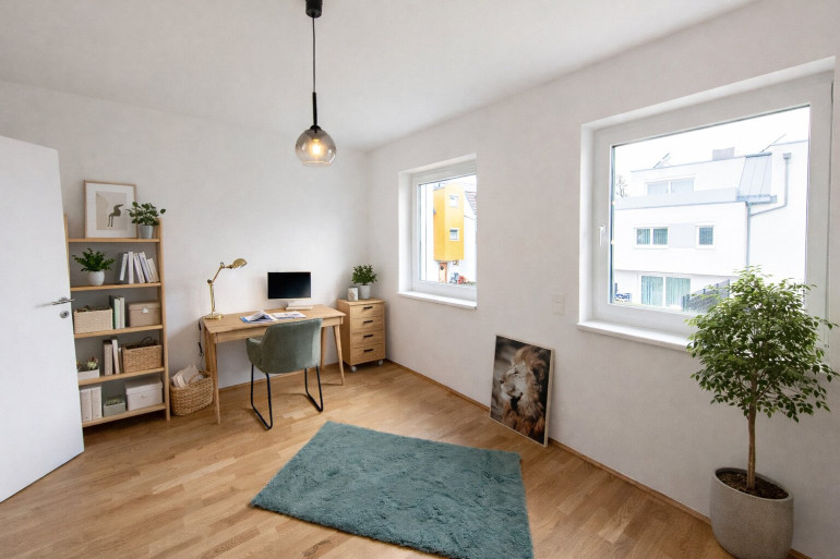 Dieses schlüsselfertige Reihenhaus (Top 2) bietet auf vier Ebenen rund 174 m² Gesamtnutzfläche (inkl. Keller) und verbindet Großzügigkeit mit durchdachter Funktionalität – ideal für alle, die Wohnen, Arbeiten und Rückzug stilvoll unter einem Dach vereinen möchten.