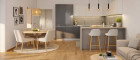 Das Oberflächenpaket beinhaltet komplette Malerarbeiten, Fliesen- und Plattenarbeiten (z. B. Feinsteinzeug 60 × 60 cm „Ares Warm Beige“) sowie Bautischlerarbeiten (z. B. Fertigparkett Eiche Landhausdiele), hochwertige Sanitärausstattung z.B. von Villeroy und Boch - für ein stimmiges, hochwertiges Wohngefühl.