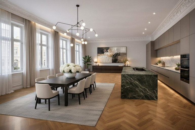 Die Liegenschaft wurde umfassend revitalisiert und präsentiert sich heute als stilvolles Boutique-Projekt mit nur wenigen Einheiten: vier exklusive Wohnungen sowie zwei hochwertige Geschäftslokale im Erdgeschoss. Klassische Altbauelemente treffen hier auf zeitgemäße Ausstattung, großzügige Fensterflächen und ein durchdachtes Gesamtkonzept, das auf Komfort, Ästhetik und Privatsphäre ausgerichtet ist.
