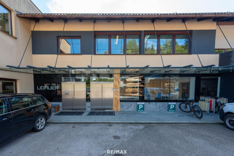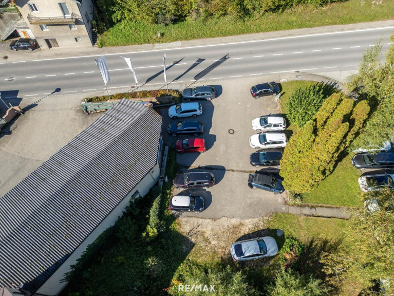 • Hohe Präsenz – Immobilie als Werbefläche unübersehbar an der Einfahrt nach Scharnstein (von Pettenbach kommend)