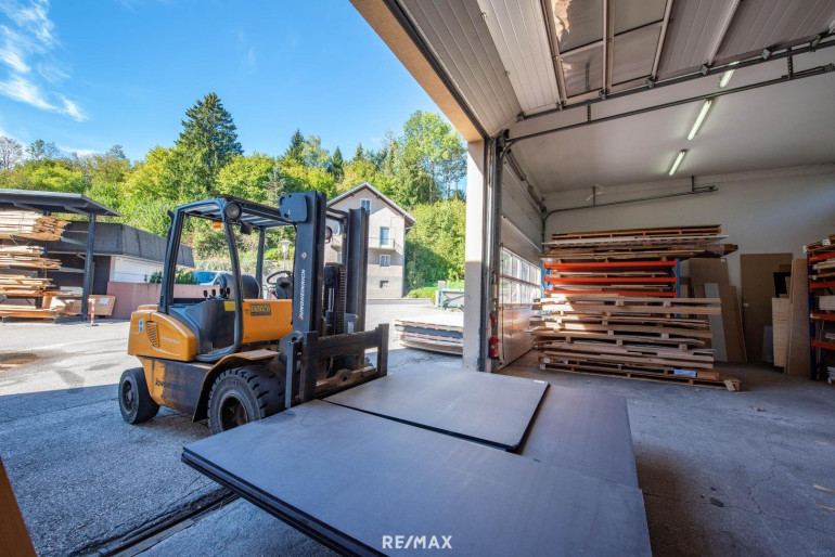 Praktische Vorzüge wie gute Parkmöglichkeiten, Garagen für PKW und Klein-LKW sowie eine hydraulische Verladerampe bieten ideale Bedingungen für Gewerbe und Logistik. Zusätzlich punktet das Gebäude mit einer modernen Stromanbindung, einer Blitzschutzanlage sowie einer umweltfreundlichen Spanheizung (BJ 2018) mit Siloaustragung. Für spezifische Anforderungen, wie z. B. Holzarbeiten, steht eine Absaugeanlage für Holzstaub bereit.