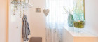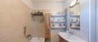 Das moderne Badezimmer ist mit Dusche und Badewanne ausgestattet, die Fußbodenheizung sorgt für angenehme Wärme, gespeist durch Fernwärme mit niedrigen Betriebskosten.
