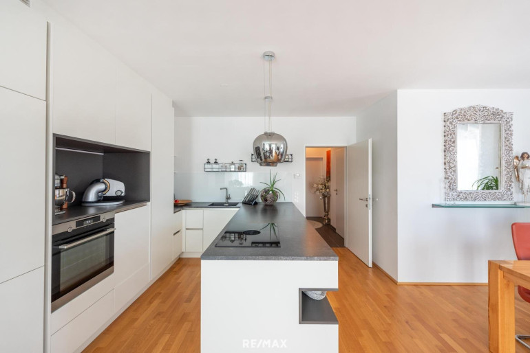 Diese helle und geräumige 3-Zimmer-Wohnung im 1. Stock bietet Wohnkomfort auf hohem Niveau. Die Wohnanlage wurde 2020 fertiggestellt, die Wohnung sehr gepflegt behandelt und präsentiert sich wie neu!Der großzügige Wohnbereich bietet ausreichend Platz für eine stilvolle Couch, einen gemütlichen Essbereich und eine große Küche. Die hochwertige HAKA-Küche mit Bora-Kochfeld ist ein echtes Highlight für Kochbegeisterte.