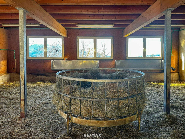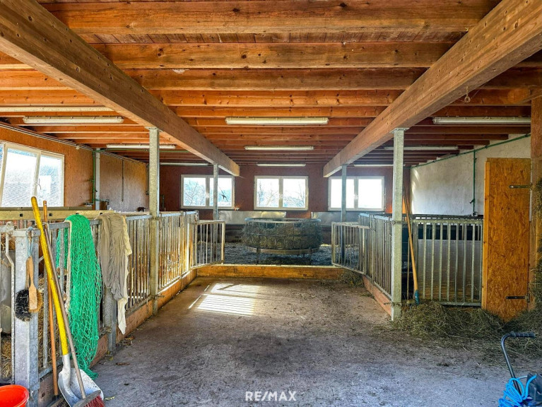 Stall in sehr gutem Zustand mit Freilaufboxen für Schafe und Ziegen (ca. 250 m²) mit einem Keller von 120 m² und einen Heubergeraum im Dachboden.