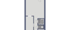 Die Raumaufteilung wurde optimal genutzt und umfasst ein ruhiges, längliches Schlafzimmer sowie eine bereits möblierte Küche. Das Badezimmer ist mit einer Badewanne ausgestattet. Das WC ist separat.