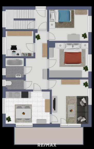 Beide Wohneinheiten (jeweils ca. 90 m²) sind über das zentrale Stiegenhaus zugänglich und eignen sich ideal für Mehrgenerationenwohnen oder Wohnen und Arbeiten unter einem Dach.