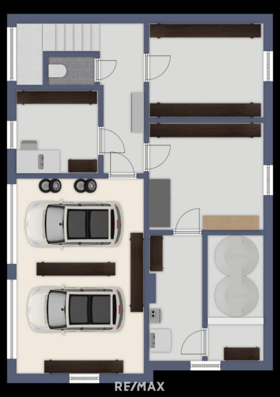 Im Kellergeschoss befinden sich zwei Abstellräume, eine Werkstatt, ein WC sowie der Heizraum. Vom Vorraum gelangen Sie direkt in die Doppelgarage.
