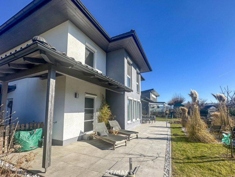 Der sonnige, liebevoll angelegte Garten rundet dieses attraktive Angebot perfekt ab. Mit Grillplatz, Essbereich, Sonnenplatz und Spielbereich bietet er ideale Voraussetzungen für entspannte Stunden im Freien – ein Zuhause zum Ankommen und Wohlfühlen. Für die Gartenbewässerung steht ein 3.000-Liter-Erdwassertank mit Pumpe im Keller zur Verfügung, der die beiden Außenwasseranschlüsse versorgt.