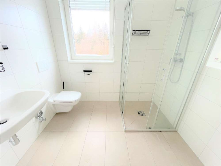 Das Schlafzimmer liegt zurückgezogen und bietet durch seinen praktischen Abstellraum zusätzlichen Stauraum. Das Bad/WC ist modern und kompakt organisiert und mit einer Dusche, Waschmaschinenanschluss und zu öffnendem Fenster ausgestattet. Im Vorraum findet die Garderobe Platz. Ein zugeordneter KFZ-Stellplatz im Carport rundet diese tolle Wohnung ab.