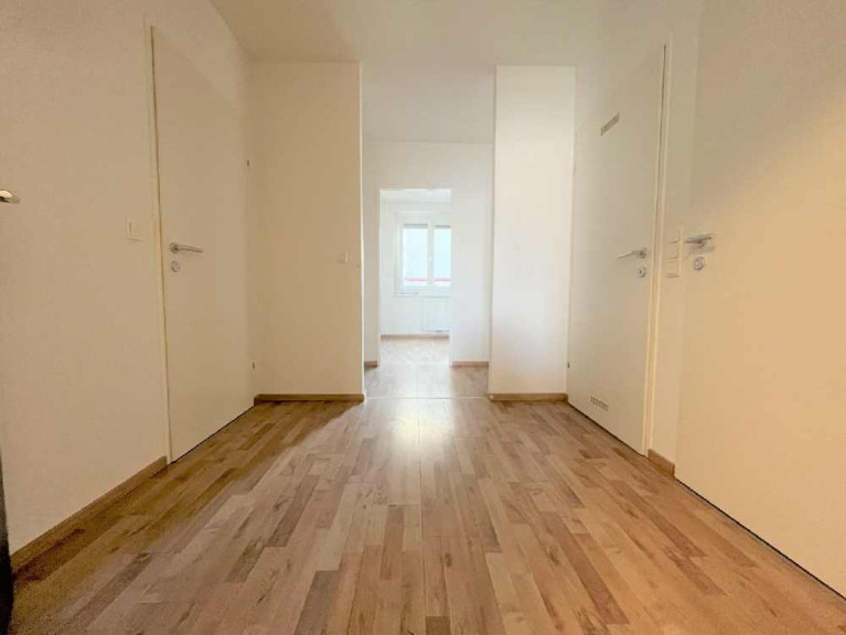 Der Vorraum erschließt sämtliche Räume zentral. Das Wohnzimmer mit Zugang zum Balkon erweitert den Wohnbereich nach außen und schafft zusätzlichen Freiraum. Zwei Schlafzimmer ermöglichen eine flexible Nutzung – ob als klassischer Schlafraum, Homeoffice oder Gästezimmer.